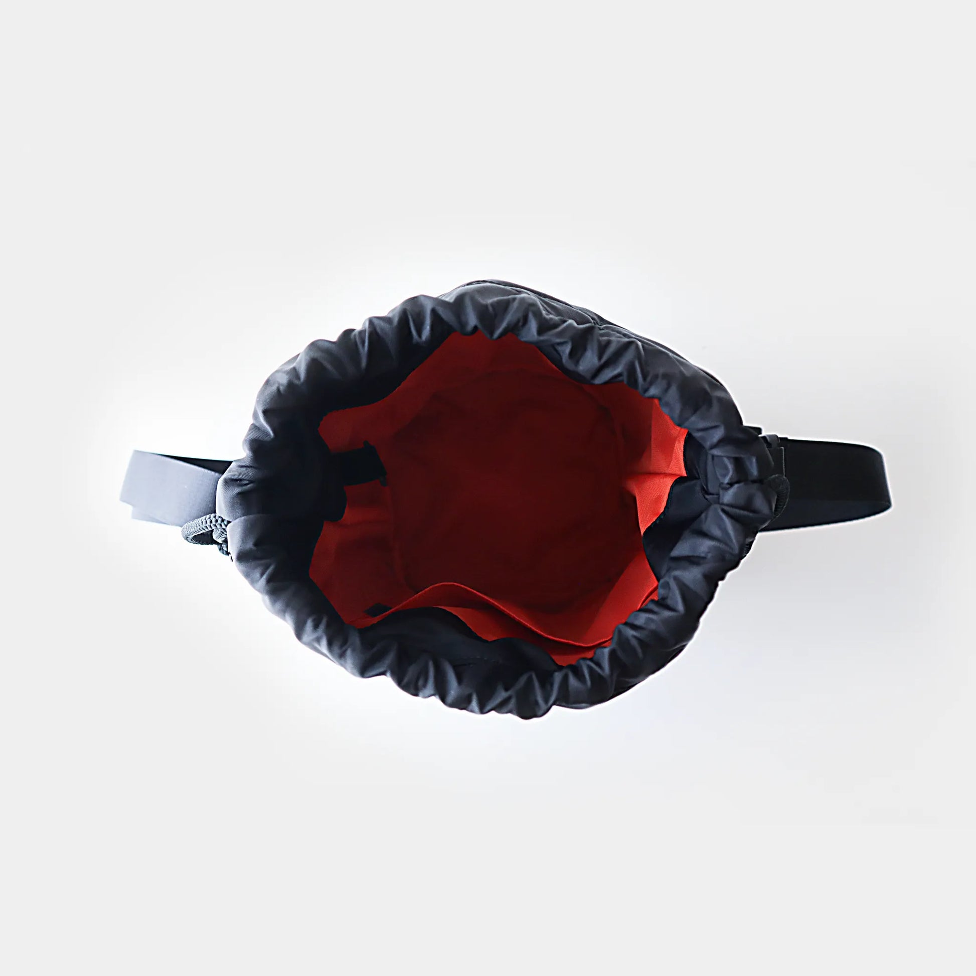 柔らかさの中に、しっかりとした構造を備えた巾着ショルダーバッグ。