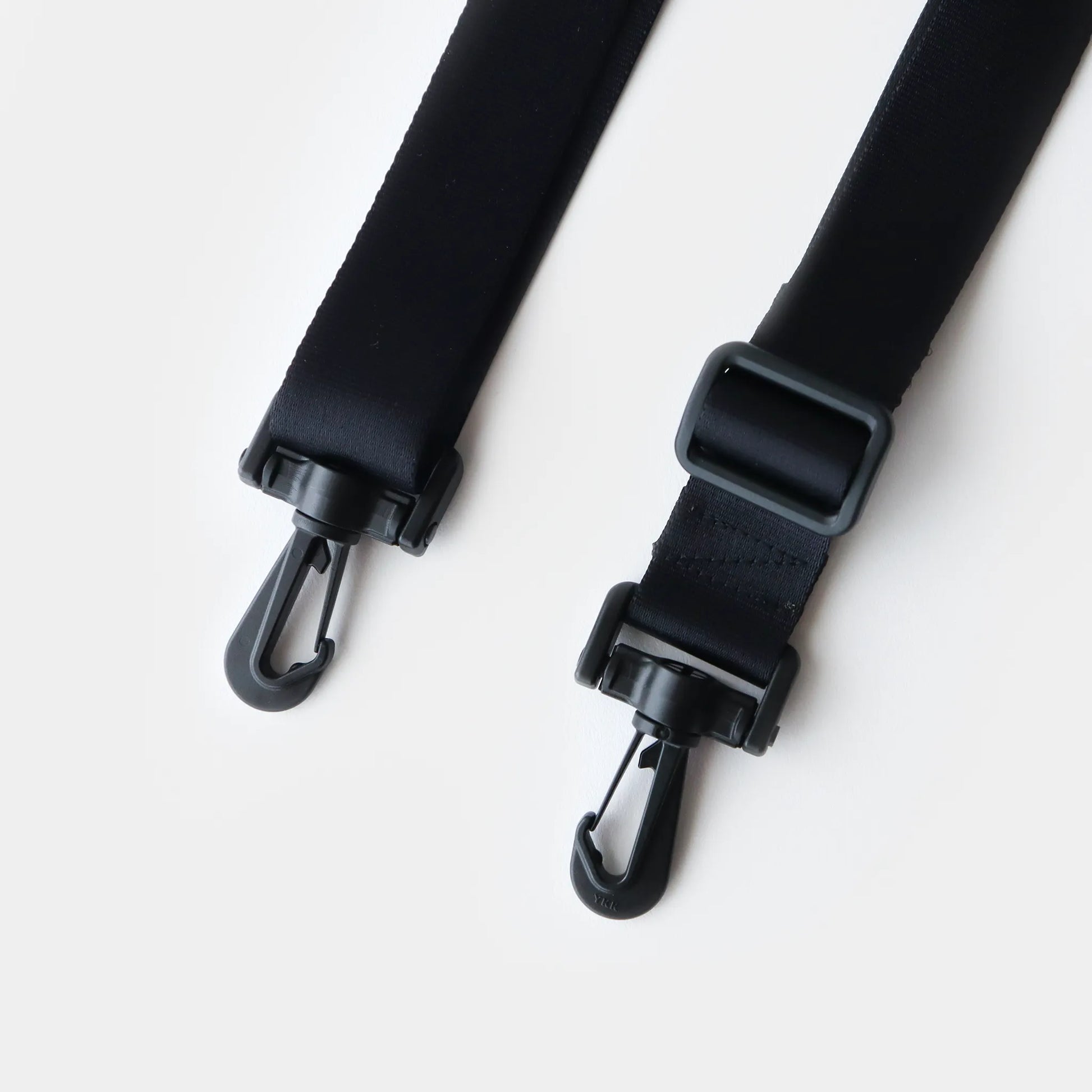 約3cm幅のショルダーベルトはしなやかに肩へ馴染み、荷物の重さを自然に分散。